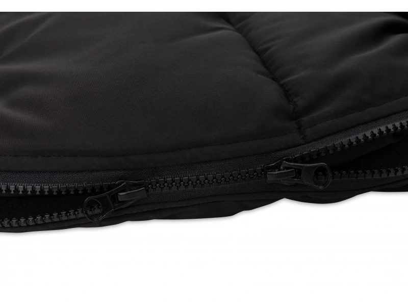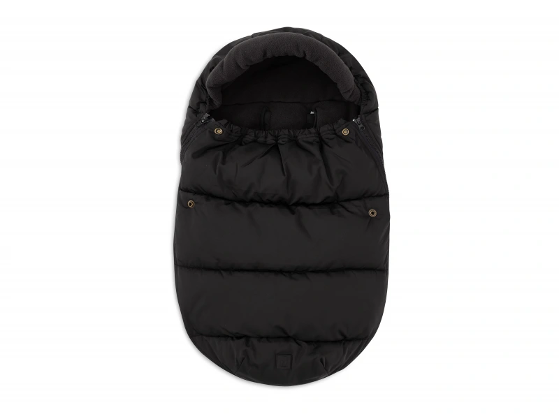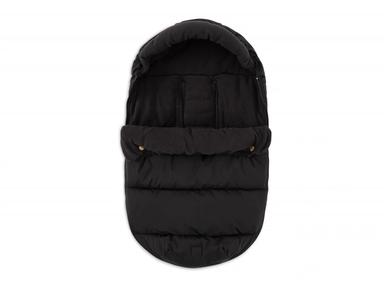 Fusak Puffed Black kombinuje moderný vzhľad s funkčnosťou, ktorú ocení každý rodič. Prešívaný vonkajší materiál s výplňou chráni dieťatko pred chladom, zatiaľ čo vnútorná vrstva z mäkkého fleecu sa postará o maximálne pohodlie počas každej cesty autom. Vďaka univerzálnym otvorom na pásy je fusak kompatibilný s väčšinou autosedačiek kategórie 0–13 kg a možno ho použiť aj v hlbokej korbe kočíka.