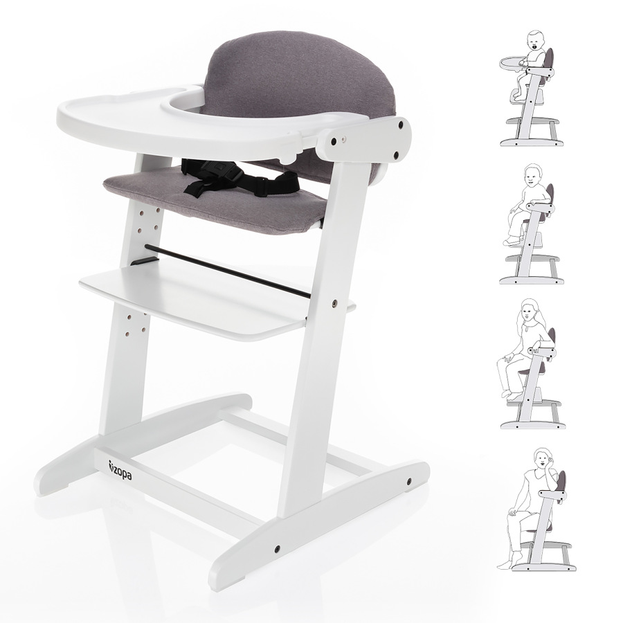 už názov napovedá, jedálenská stolička Grow Up sa prispôsobuje rastúcim deťom, a to od 6 mesiacov veku. Vďaka možnosti