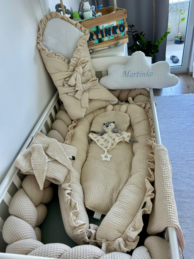 Hniezdo pre bábätká od slovenského výrobcu BySues prináša pocit istoty a pohodlia už od prvých dní života. Mäkké okraje tvoria okolo dieťatka ochrannú bariéru, ktorá zabraňuje prevráteniu a nárazom do postieľky. Jemná 100 % Wafla je šetrná k citlivej pokožke a antialergická výplň z dutého vlákna zaisťuje, že prostredie hniezda je nielen útulné, ale aj zdravé. Ideálne na spánok, odpočinok aj bezpečné hranie počas dňa.
