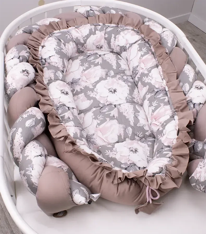 Hniezdo pre bábätká od slovenského výrobcu BySues prináša pocit istoty a pohodlia už od prvých dní života. Mäkké okraje tvoria okolo dieťatka ochrannú bariéru, ktorá zabraňuje prevráteniu a nárazom do postieľky. Jemná 100 % bavlna je šetrná k citlivej pokožke a antialergická výplň z dutého vlákna zaisťuje, že prostredie hniezda je nielen útulné, ale aj zdravé. Ideálne na spánok, odpočinok aj bezpečné hranie počas dňa.