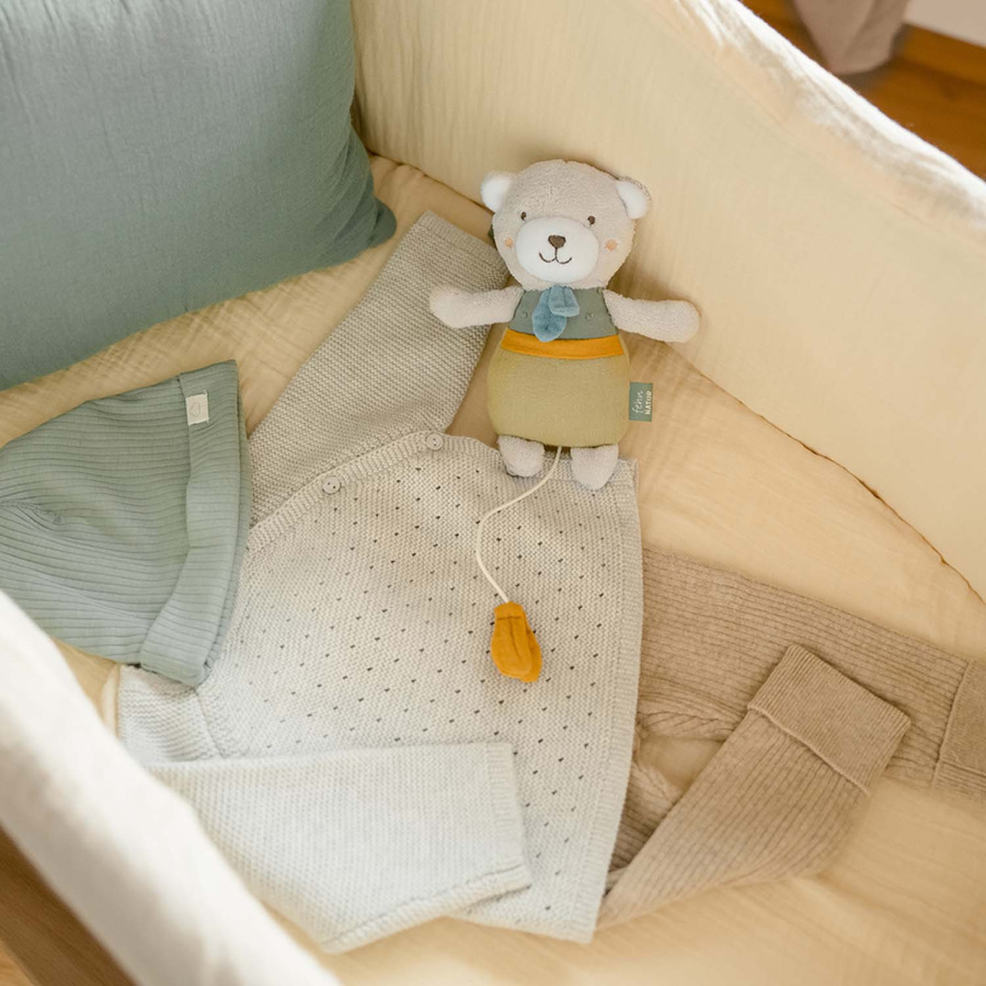 Táto roztomilá plyšová hračka, zároveň pomocník pri uspávaní, je vyrobená z bavlny pochádzajúcej z kontrolovaného ekologického poľnohospodárstva. Schubertova uspávanka prináša upokojenie v každej situácii, či už ste doma alebo na cestách. Je to ideálny parťák pre dojčatá aj batoľatá.