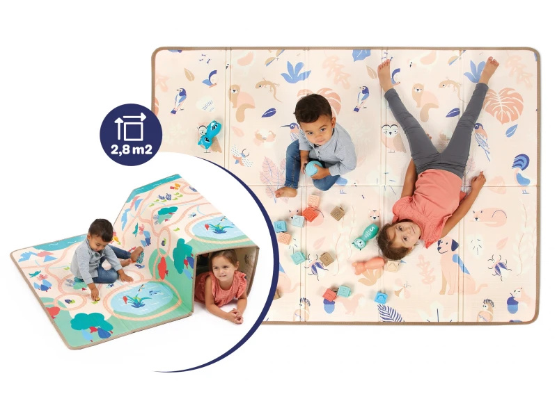 Skladacia penová hracia podložka ponúka veľkorysý priestor na každodenné objavovanie, hranie aj relax už od narodenia. Mäkký, obojstranný povrch chráni dieťa pri prvých pokusoch o lezenie, státie či stavanie a vytvára bezpečné miesto pre kreatívne hry. Flexibilná konštrukcia umožňuje deťom postaviť z podložky tunel, ostrovček alebo dráhu, zatiaľ čo rodičom poskytuje ľahké skladovanie a jednoduchú údržbu.