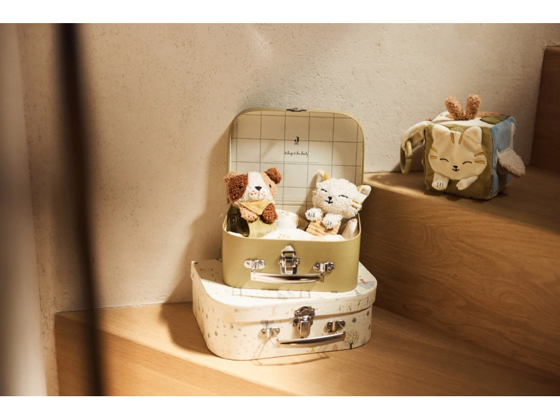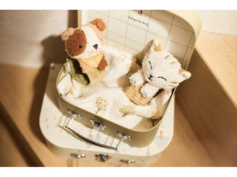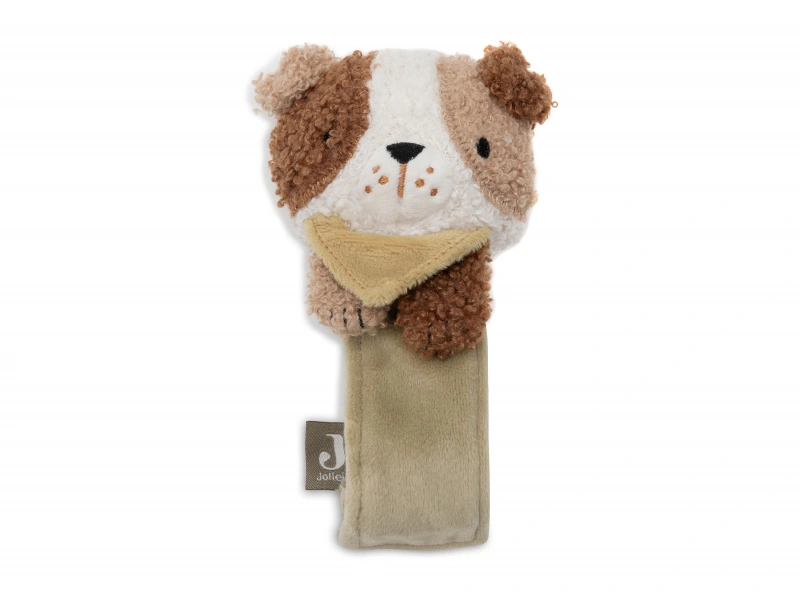 Hrkálka na ruku psík Mick je dokonalým spoločníkom pre najmenšie bábätká, ktoré začínajú objavovať svoje ručičky a prvé pohyby. Vďaka prevedeniu vo forme mäkkého náramku vydáva zvuky pri každom pohybe, čím prirodzene podporuje motoriku, koordináciu aj zvedavosť dieťaťa. Mäkučký materiál s jemnými prúžkami je ideálny pre citlivú pokožku novorodencov.