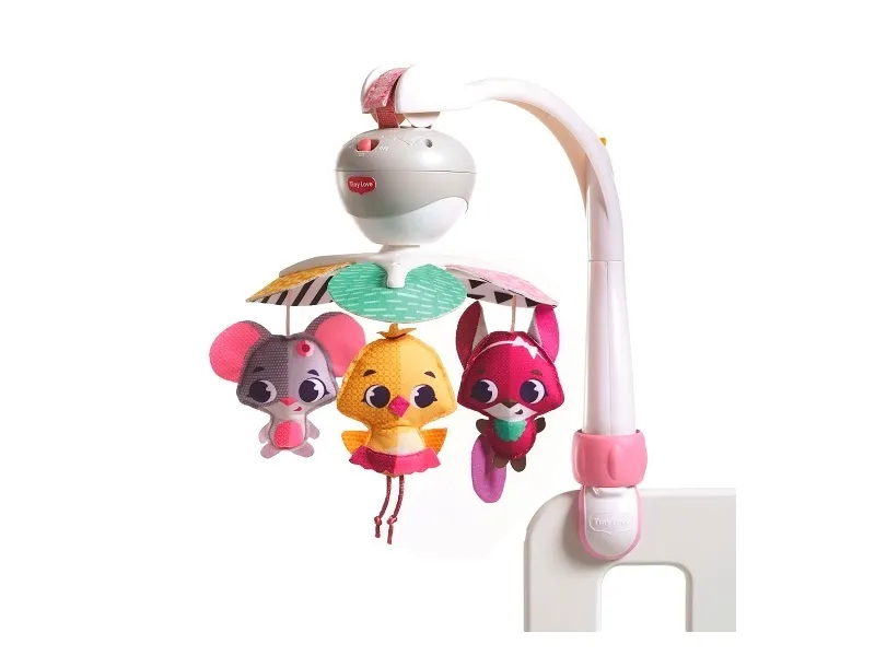 Hudobný kolotoč Tiny Love je ideálny spoločník na cesty, prechádzky aj pobyty mimo domova. Hrá až 30 minút upokojujúcich melódií a otáčajúce sa postavičky zabavia bábätko už od narodenia. Vďaka trom spôsobom uchytenia je vhodný na kočík, autosedačku aj cestovnú postieľku – vždy tam, kde ho práve potrebujete.