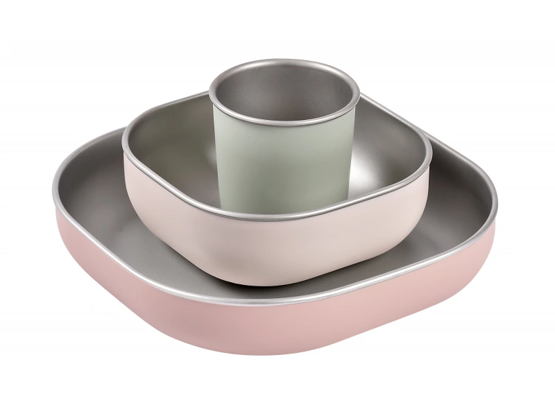 Táto 3-dielna nerezová jedálenská sada Cotton Candy je vytvorená pre deti, ktoré sa učia prvým samostatným pokusom pri jedle. Ergonomický tvar, vysoké okraje a zaoblené rohy uľahčujú naberanie jedla, zatiaľ čo protišmykový silikónový povrch pomáha tomu, aby tanier, miska aj pohárik pevne držali na stole. Odolné materiály zabezpečujú dlhú životnosť a pohodlné každodenné používanie.