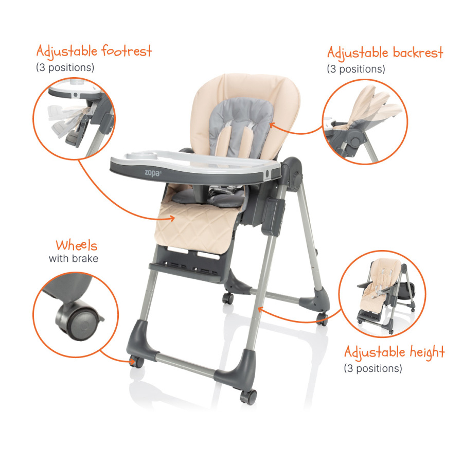 nastavenia výšky prispôsobí každému stolu. Vďaka 3 polohám chrbtovej opierky, 3