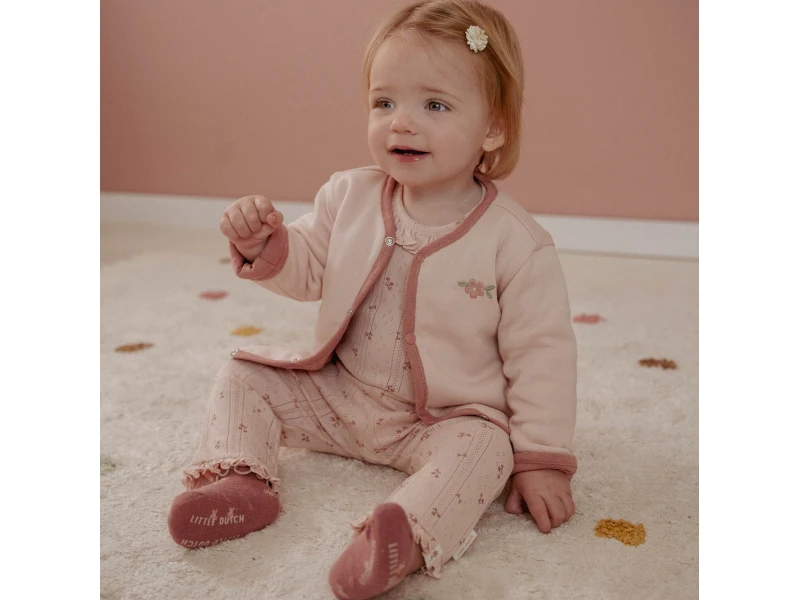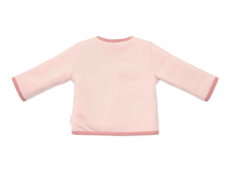 Kabátik Pink Blush vo veľkosti 68 je ideálnym kúskom pre najmenšie bábätká, ktoré potrebujú jemné, priedušné a hrejivé oblečenie. Dvojvrstvové obojstranné prevedenie umožňuje striedať vzhľad podľa potreby – jemná svetloružová s výšivkou kvietku alebo elegantná tmavoružová s pleteným vzorom. Praktické zapínanie na patentky uľahčí každodenné obliekanie aj prebaľovanie.
