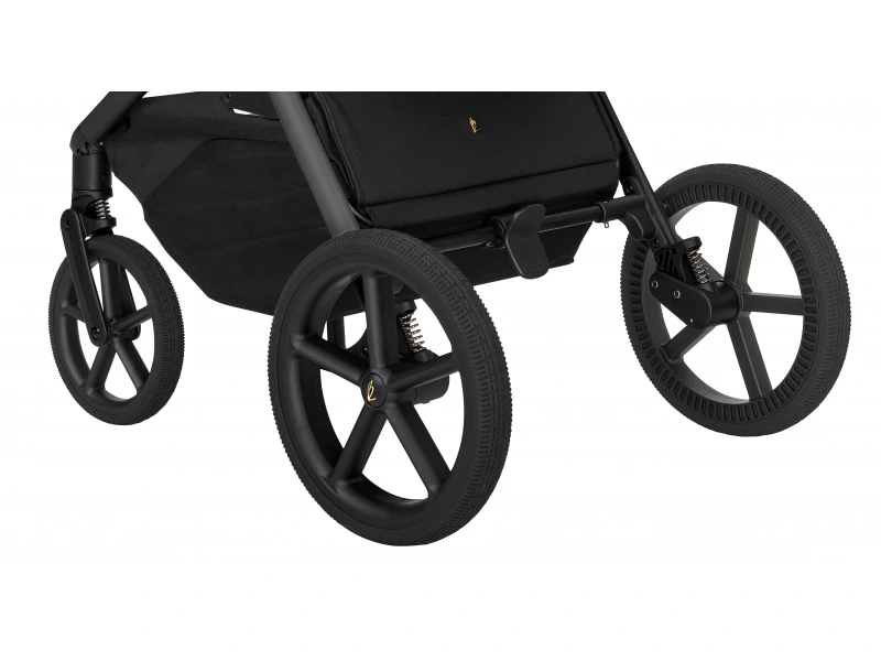 Pri jazde oceníte možnosť výškového nastavenia rukoväte do 5 pozícií. Pohodlnú jazdu a ľahké manévrovanie zaisťujú veľké kolesá, predné kolesá sú otočné o 360 ° s možnosťou aretácie. Nechýba pružinové odpruženie zadných aj predných kolies a spoľahlivá "one touch" brzda. Po zložení kočík samostatne stojí. Pre ľahké prenášanie je pripravený popruh cez rameno a madlo.