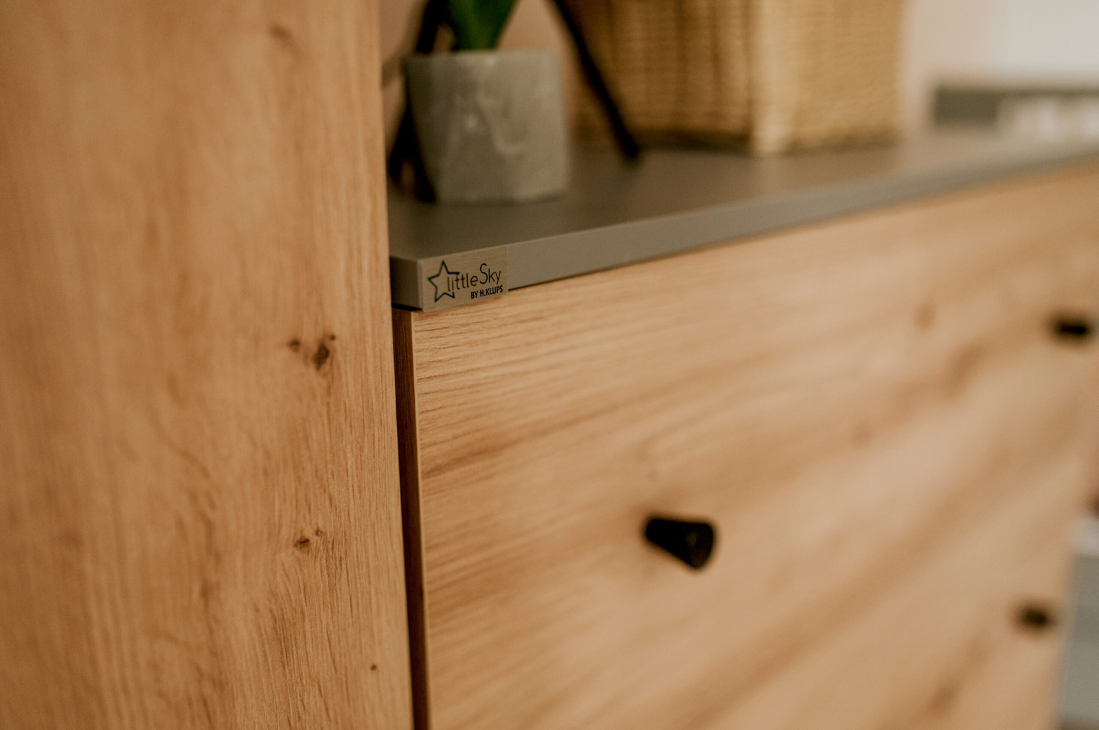 Štýlová komoda do detskej izby v loftovom dizajne je ideálnou voľbou pre rodičov, ktorí hľadajú praktický a zároveň dizajnový úložný priestor. Kombinácia grafitovej farby a dekoru dreva pôsobí nadčasovo a ľahko sa kombinuje s ďalším nábytkom. Komoda ponúka dostatok miesta na oblečenie, doplnky aj veci potrebné pri každodennej starostlivosti o dieťa.