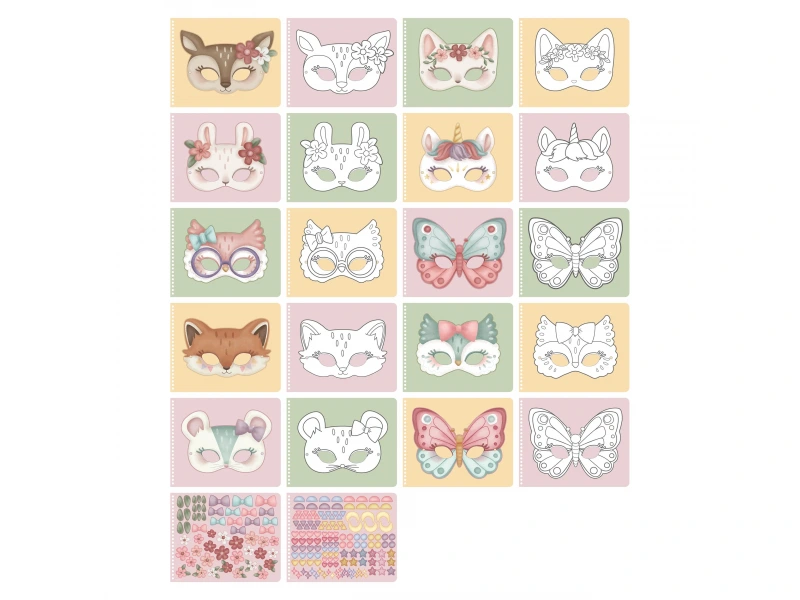 • Obsahuje 20 farebných vystrihovacích masiek pre množstvo zábavy a hier