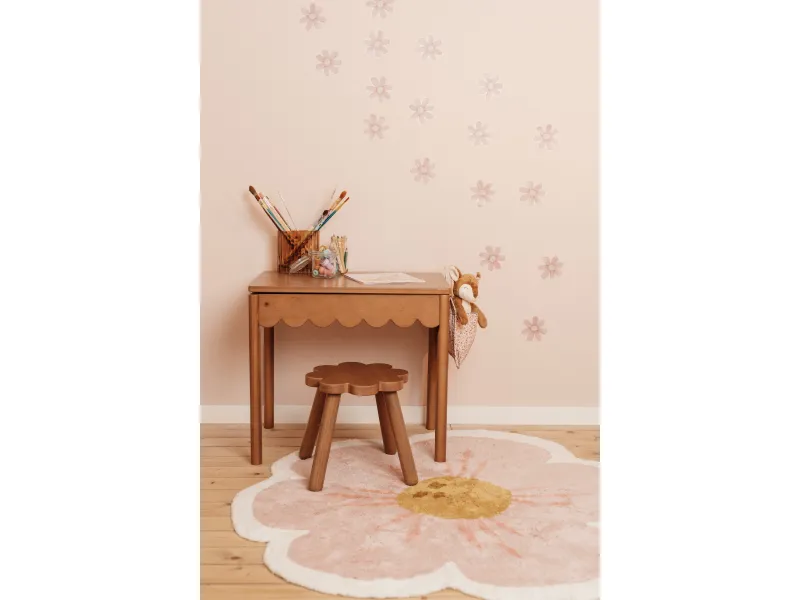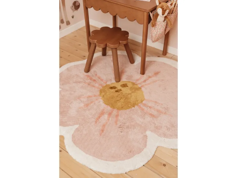 Tento nežný koberec v tvare kvetinky dodá detskej izbe teplo, jemnosť a hravý prírodný nádych. Vďaka mäkkej organickej bavlne je príjemný na dotyk a vytvára pohodlné miesto na hranie, čítanie aj oddych.