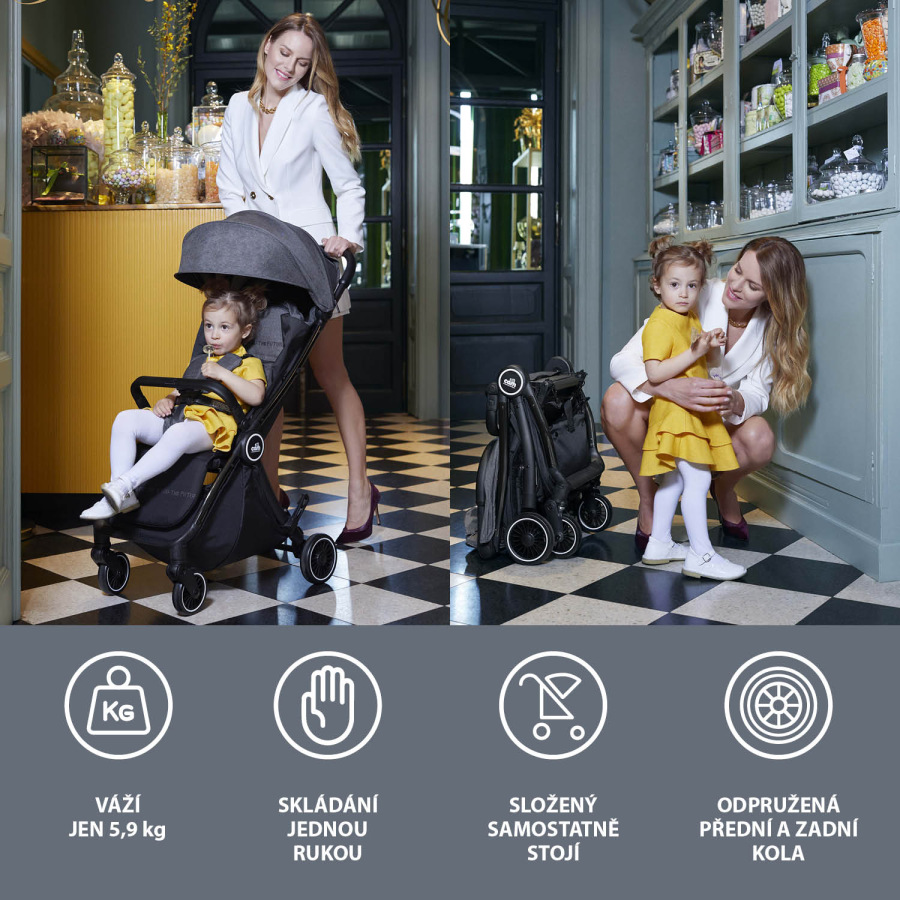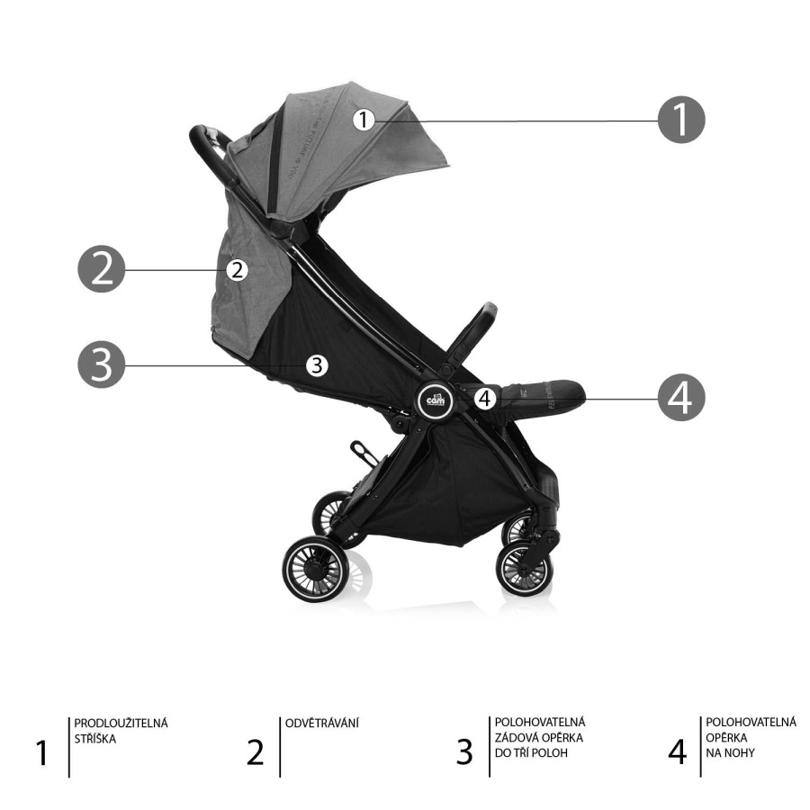 Praktický kočík Matic od talianskej značky Cam sa postará o pohodlie vašich detí nielen na cestách. Medzi jeho hlavné prednosti patrí jednoduché skladanie – skladá sa jednou rukou, a kompaktné rozmery – zložený kočík samostatne stojí a zaberá minimum miesta, takže sa pohodlne zmestí aj do kufra tých najmenších áut. Váži iba 5,9 kg.