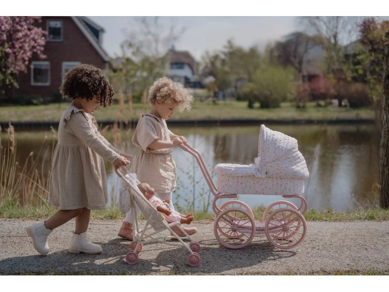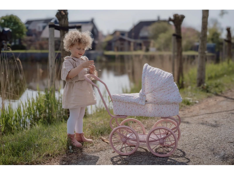 Krásny kočík pre bábiky z kolekcie Little Dutch Soft Flowers poteší každé dieťa, ktoré sa rado hrá na rodiča. Vďaka štyrom veľkým kolesám je jazda stabilná a plynulá, a to ako v interiéri, tak aj vonku. Mäkký matrac vo vnútri poskytne bábike pohodlné miesto na odpočinok, zatiaľ čo spodný úložný košík ponúka priestor na doplnky alebo malé hračky.