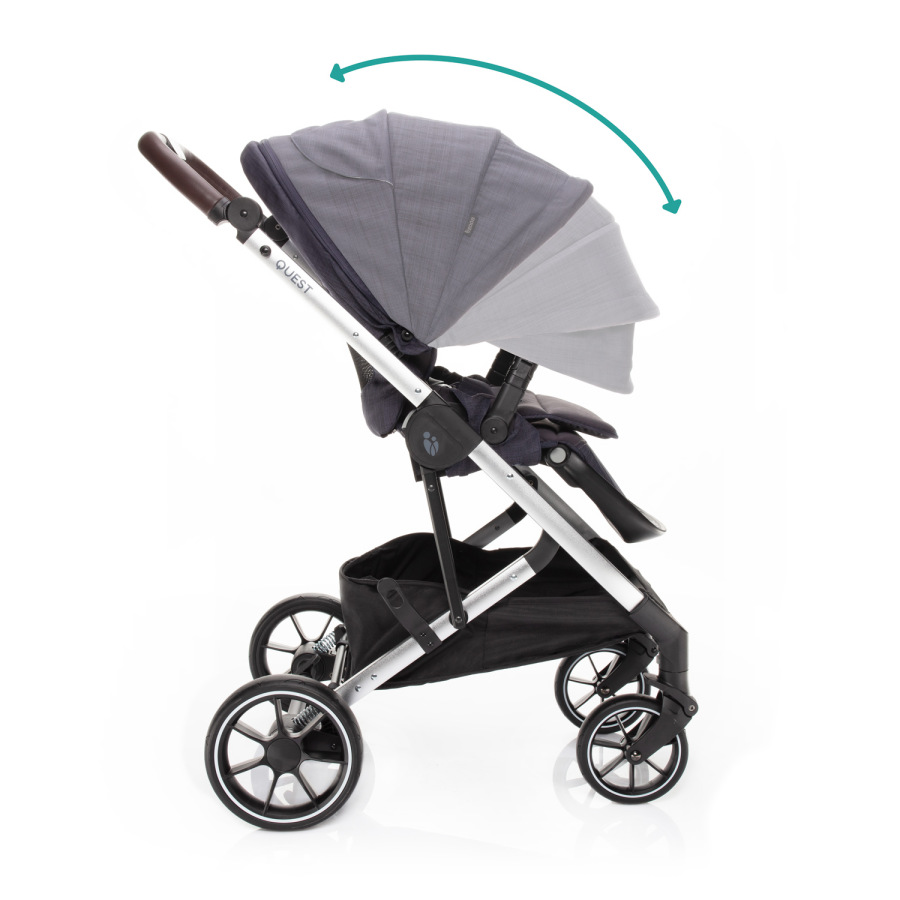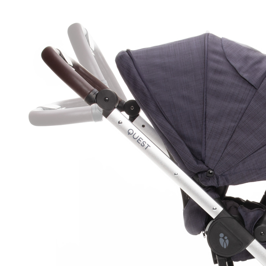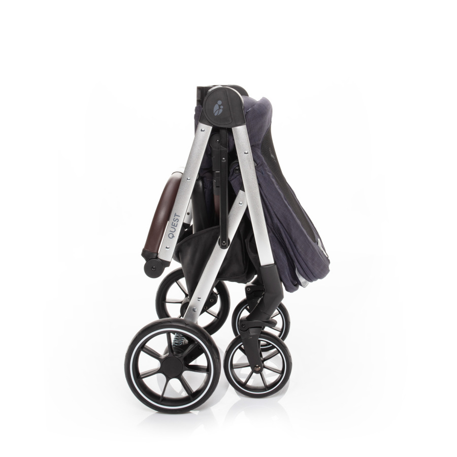 Virtuóznu manipuláciu a ľahké ovládanie modelu QUEST zabezpečuje nielen kvalitné odpruženie a dostatočne veľké gumené kolesá, ale aj výškovo nastaviteľná rukoväť a predné kolesá s automatickou aretáciou. Obe zadné kolesá možno brzdiť súčasne centrálne ovládanou brzdou. Zabráni sa tak neúmyselnému pretočeniu kočíka. Okrem toho je brzdový pedál navrhnutý tak, aby sa dal zošliapnuť len zhora. To znamená, že si nepoškodíte obuv.