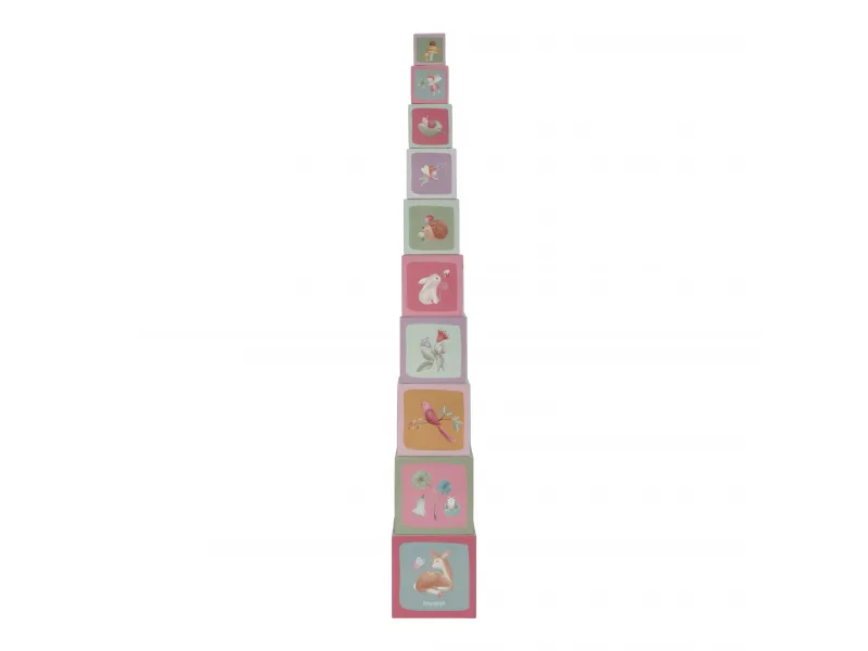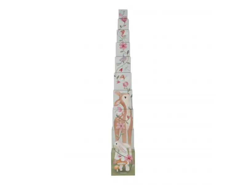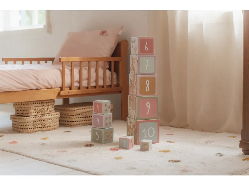 Kocky komín Fairy Garden sú krásne ilustrované kartónové kocky, ktoré podporujú zvedavosť, motoriku aj prvé učenie formou hry. Deti ich môžu stavať na seba do vysokej veže alebo rozkladať podľa veľkosti, čo rozvíja priestorové vnímanie aj logické myslenie. Vďaka očíslovaným stranám sa staršie deti postupne učia rozpoznávať číslice a počítať.