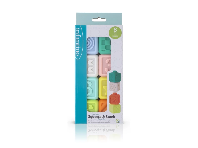 Senzorické kocky Squeeze & Stack podporujú rozvoj jemnej motoriky, hmatu aj zrakového vnímania dieťaťa už od 6 mesiacov. Mäkký materiál je bezpečný pre malé rúčky, kocky sa ľahko stláčajú, skladajú aj spájajú a dieťa ich môže bezpečne skúmať v ústach. Vďaka rôznym tvarom, číslam a textúram poskytujú množstvo podnetov na zábavné učenie každý deň.