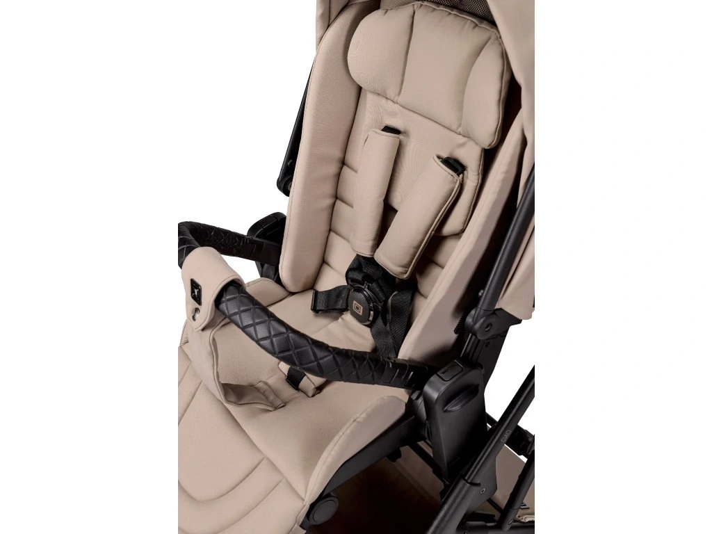Veľké panoramatické okno v kombinácii s ventilačným otvorom zabezpečuje príjemnú cirkuláciu vzduchu, ideálnu najmä v letných mesiacoch. Vnútro vaničky je vyhotovené z nového prémiového materiálu v elegantnom odtieni Light Grey, ktorý je mäkký na dotyk a pôsobí nadčasovo. Extra široká konštrukcia poskytuje bábätku dostatok priestoru aj počas rýchleho rastu. Praktické, prešívané madlo uľahčuje prenášanie a zároveň dodáva vaničke luxusný vzhľad.
