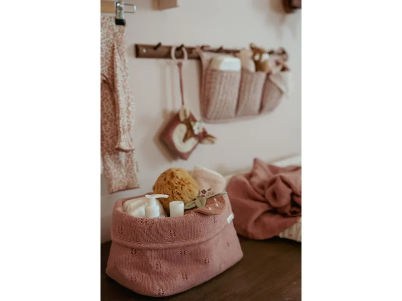 Malý pletený košík Pure je ideálny na každodenné používanie pri starostlivosti o bábätko. Vďaka pevnému tvaru a praktickej veľkosti pomáha udržať všetky drobnosti prehľadne na jednom mieste. Jeho jemný pletený dizajn zapadne do akéhokoľvek interiéru detskej izby či kúpeľne.