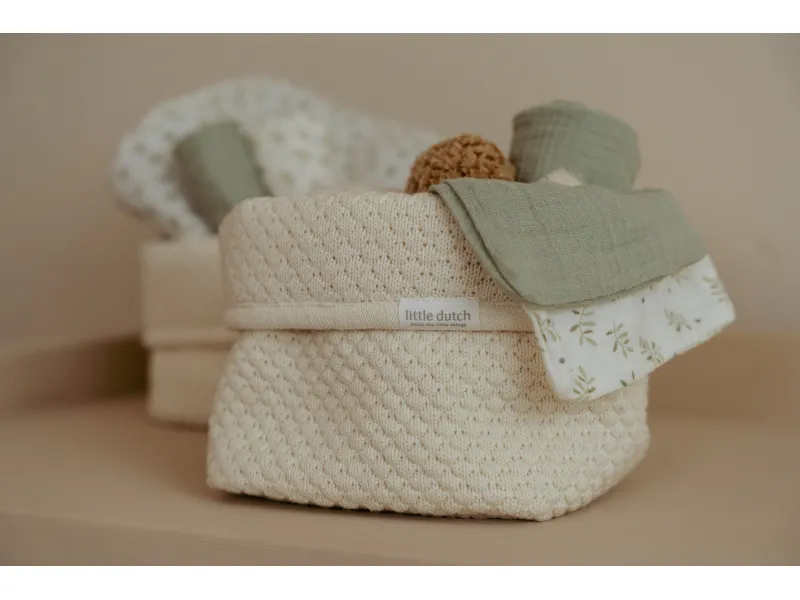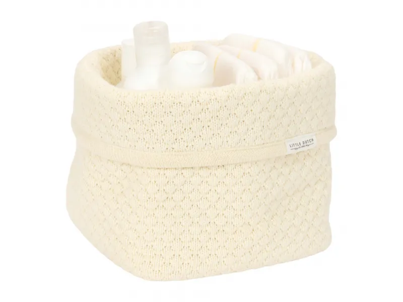 Malý pletený košík Pure je ideálny na každodenné používanie pri starostlivosti o bábätko. Vďaka pevnému tvaru a praktickej veľkosti pomáha udržať všetky drobnosti prehľadne na jednom mieste. Jeho jemný pletený dizajn zapadne do akéhokoľvek interiéru detskej izby či kúpeľne.