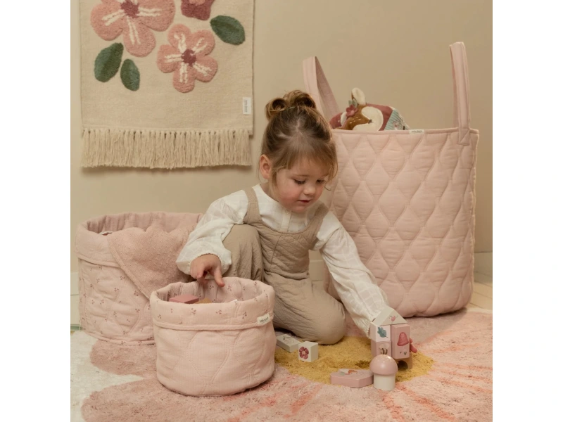 Elegantný obojstranný košík Pure Blossom od značky Little Dutch pomáha udržať poriadok a zároveň skrášli každý detský interiér. Vďaka jemnému ružovému odtieňu a mäkkej, prešívanej štruktúre pôsobí luxusne a zároveň prirodzene. Je ideálny na uloženie hračiek, diek, plyšákov alebo doplnkov, ktoré chcete mať vždy po ruke.