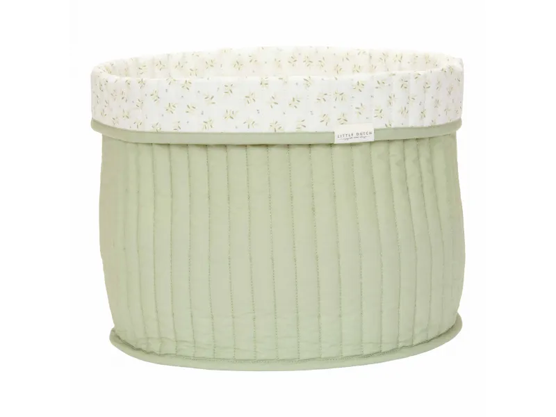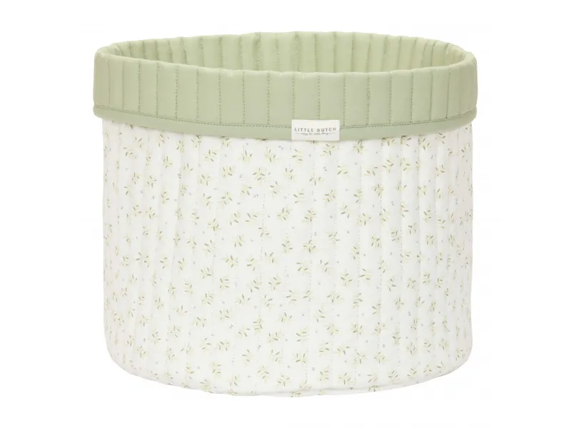 Elegantný košík Little Dutch Blueberry Leaves z pevnej organickej bavlny prináša do detskej izby praktické riešenie aj estetický doplnok. Je ideálny na prehľadné uloženie hračiek, kozmetiky, plienok či doplnkov na prebaľovanie. Jemný vzor s motívom čučoriedkových lístkov dodáva priestoru pokojný a harmonický vzhľad.