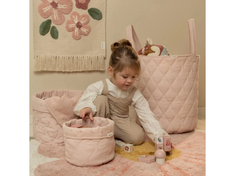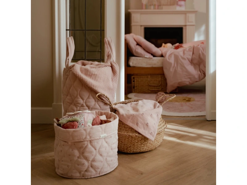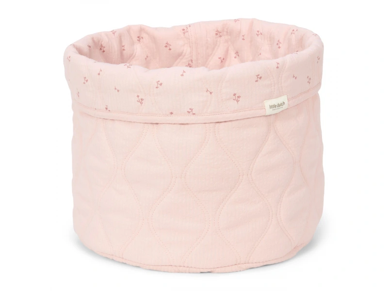 Textilný košík Pure Blossom je praktický a zároveň estetický doplnok do každej detskej izby. Vyrobený z pevnej organickej bavlny ponúka dostatok priestoru na uloženie všetkých potrebných vecí – od kozmetiky pri prebaľovaní až po drobné hračky či doplnky. Obojstranné prevedenie umožňuje meniť vzhľad košíka podľa nálady alebo štýlu izbičky, takže vždy perfektne zapadne do interiéru.