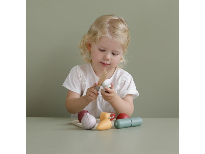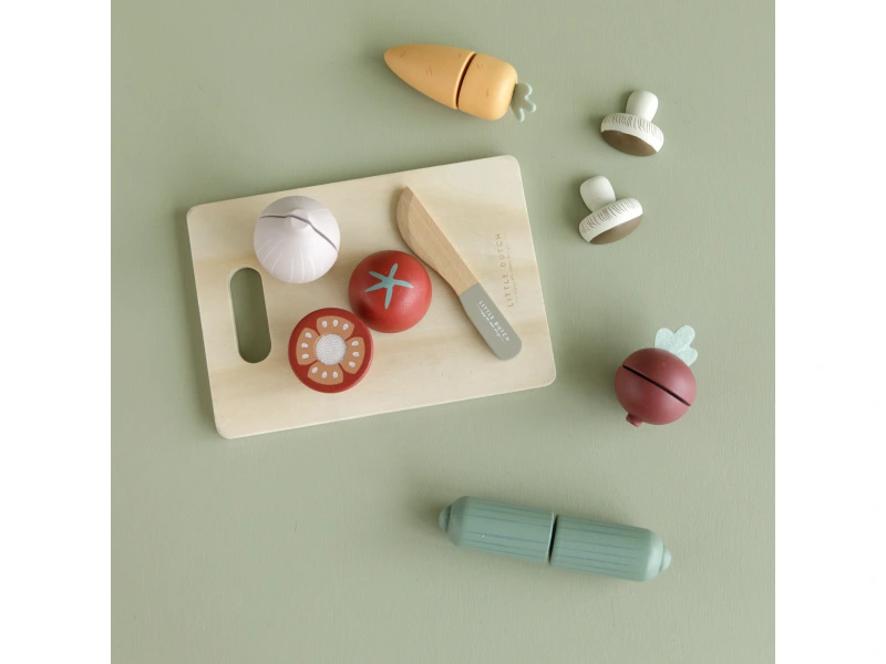 Doprajte svojmu dieťaťu realistický zážitok z varenia s drevenou sadou Little Dutch – Krájacia zelenina. Táto sada rozvíja fantáziu, jemnú motoriku a učí deti základom zdravého stravovania hravou formou. Ideálna doplnková hračka k detskej kuchynke pre malých kuchárov aj kuchárky od 2 rokov.