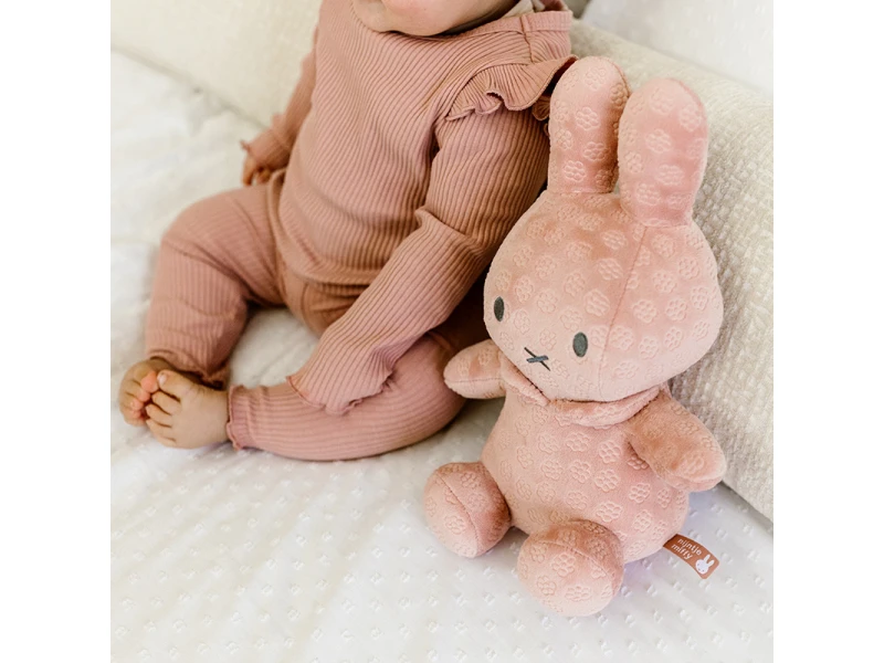 Králiček Miffy Pink Flower je mäkká plyšová hračka, ktorá rozvíja prvé zmysly dieťatka a ponúka bezpečné maznanie od narodenia. Jemný materiál a drobná veľkosť umožňujú dieťaťu hračku ľahko uchopiť aj pri samostatnom objavovaní. Vďaka svojmu nežnému dizajnu je zároveň krásnou dekoráciou detskej izbičky.