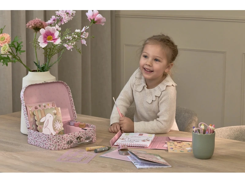 Veľká kreatívna súprava obsahuje potreby pre rôzne druhy výtvarného tvorenia vrátane pasteliek, samolepiek, pečiatok a pod. Motívy zo života rozprávkovej víly, zvieratká a kvety, to všetko nabáda k vymýšľaniu príbehov a kreatívnemu tvoreniu. Všetko je zabalené v krásnom kufríku, do ktorého všetko po skončení hry ľahko upracete.
