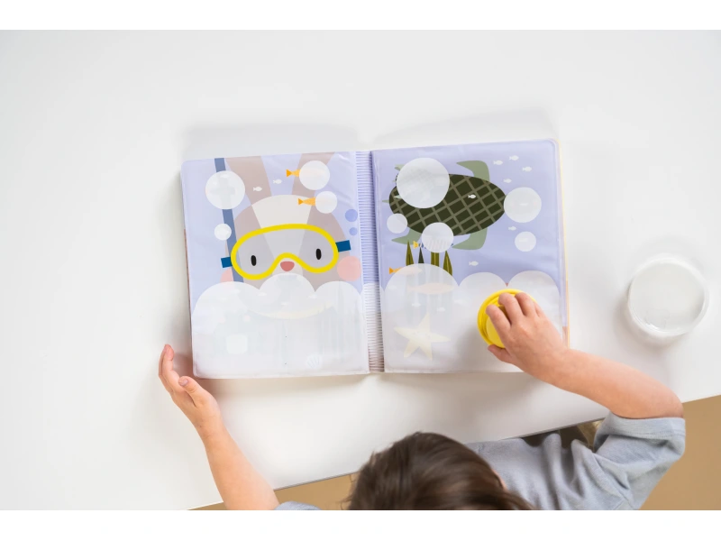 Stačí nechať obrázky vyschnúť a knižka je pripravená na opätovné použitie.
