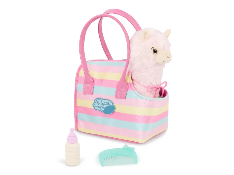 Táto nežná plyšová lama v štýlovej taške s potlačou je ideálnou spoločníčkou na maznanie, hranie aj prechádzky. Deti ju môžu česať priloženým hrebienkom a vďaka priečnemu otvoru v taške môže lama počas prenášania „sledovať svet okolo“. Set podporuje fantáziu, starostlivosť a rolové hry, ktoré deti milujú.