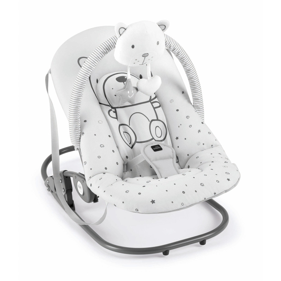 Kompaktné lehátko Cam Giocam ponúka možnosť hojdania dieťaťa a ďalšie nevyhnutné prvky, ako sú 3-bodový bezpečnostný pás, nastavenie operadla a hrazda s plyšovými hračkami.
