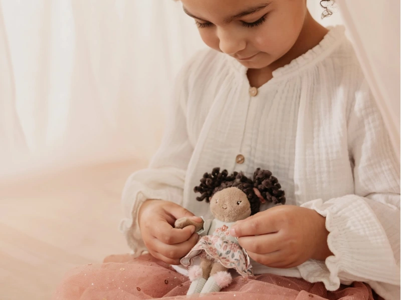 Mini plyšová bábika Little Dutch Evi je ideálnou voľbou ako prvá bábika pre bábätko. Vďaka jemnému materiálu je vhodná na každodenné hranie aj maznanie a pomáha vytvárať pocit bezpečia pri zaspávaní. Jej kompaktný rozmer padne perfektne do malých detských ručičiek, takže ju dieťa môže mať stále pri sebe doma aj na cestách.