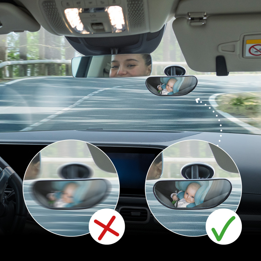 S naším kompaktným spätným zrkadlom budete mať dokonalý prehľad o tom, čo sa deje na zadných sedadlách. Jeho vypuklý dizajn výrazne rozširuje zorný uhol, takže môžete svoje dieťa pohodlne a bezpečne sledovať aj počas jazdy. Možnosť otáčania o 360° umožňuje prispôsobiť polohu zrkadla presne podľa vašich potrieb, čo zaručuje pohodlné používanie pri každej jazde.