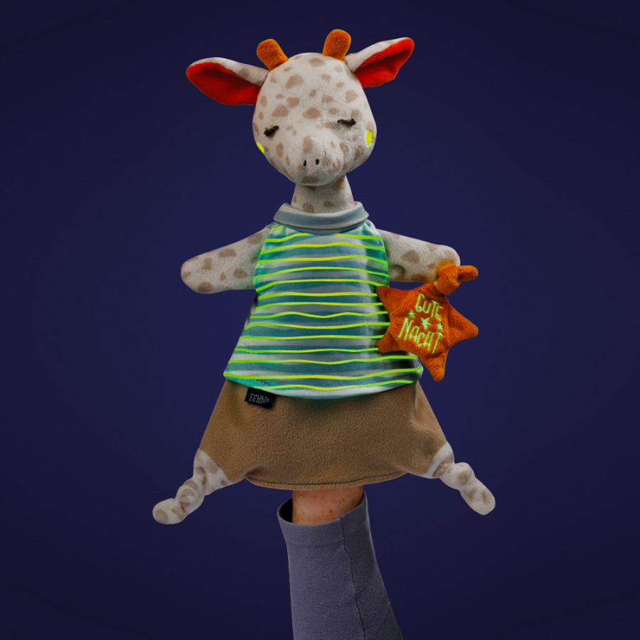 Plyšové zvieratko cez deň, rozprávač večer a strážca pokojného spánku - to je žirafa z kolekcie Gute Nacht. Roztomilá plyšová hračka z mäkkého velúru bude verným spoločníkom vášho dieťaťa. Môžete ho použiť ako maňušku, s ktorou môžete svoje dieťa učiť novým zručnostiam, rozprávať mu rozprávky pred spaním alebo len rozvíjať jeho predstavivosť a fantáziu. Vďaka svetlám sa vaše dieťa bude cítiť bezpečne a lepšie zaspí.