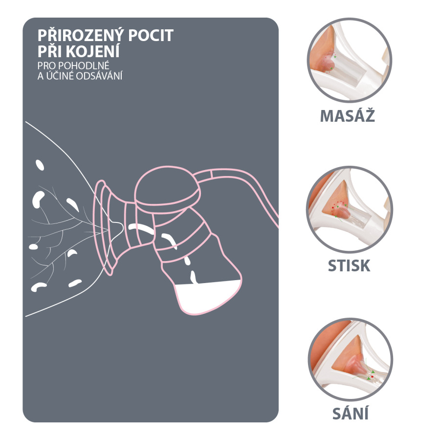 Unikátna technológia, ktorá dokonale napodobňuje prirodzené satie dieťaťa. Zaručí maximálnu efektivitu a bezbolestné odsávanie.