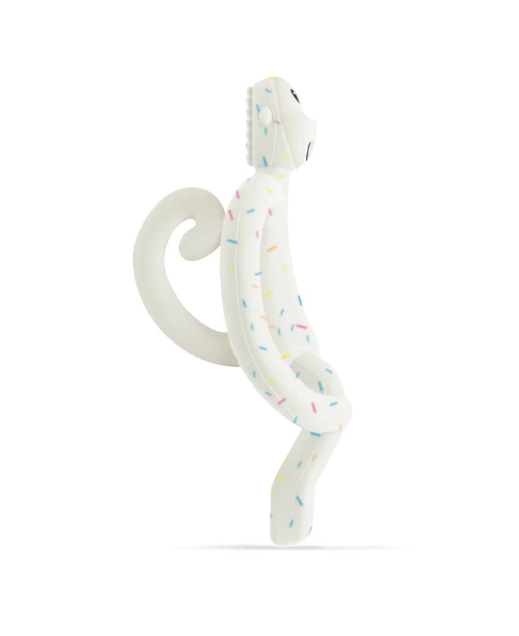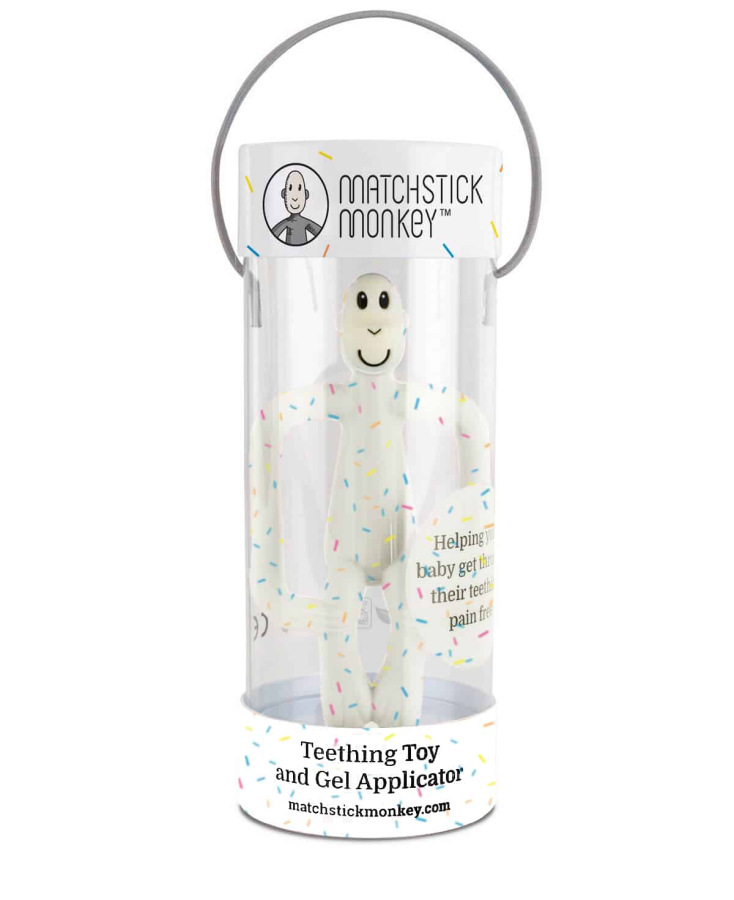 Hryzadlo a zubná kefka Matchstick Monkey je inovatívna 2v1 pomôcka určená pre bábätká od 3 mesiacov, ktorá pomáha zmierniť nepríjemné pocity pri prerezávaní prvých zúbkov. Spája hryzátko, masážnu kefku a aplikátor zubného gélu, vďaka čomu sa účinne dostane priamo k zdroju bolesti a upokojí boľavé ďasná. Ergonomický tvar je navrhnutý pre malé detské ručičky a podporuje prirodzenú reguláciu tlaku samotným dieťaťom.