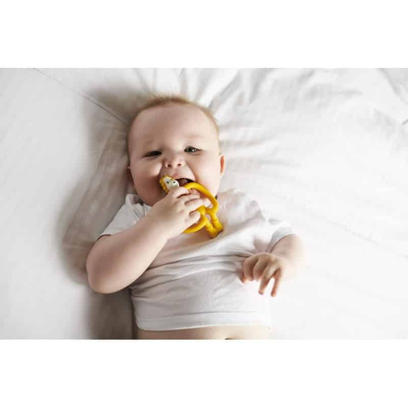 Hryzadlo a zubná kefka Matchstick Monkey Ludo Lion je inovatívna 2v1 pomôcka navrhnutá pre najmenšie deti už od narodenia. Spája hryzátko, jemnú masážnu kefku a aplikátor zubného gélu, vďaka čomu cielene pomáha zmierniť bolesť pri prerezávaní prvých zúbkov. Ergonomický tvar s motívom leva umožňuje jednoduché uchopenie a podporuje prirodzené žuvacie pohyby dieťaťa.