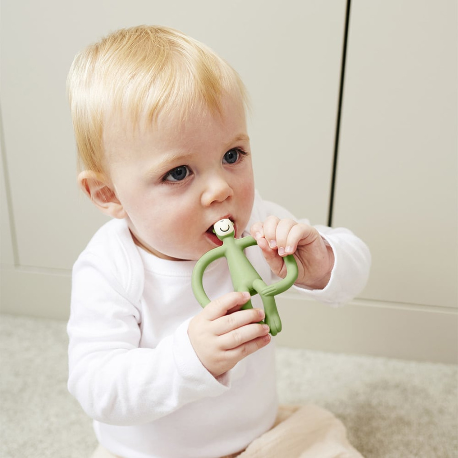 Hryzadlo a zubná kefka Matchstick Monkey je inovatívna 2v1 pomôcka určená pre bábätká od 3 mesiacov, ktorá pomáha zmierniť nepríjemné pocity pri prerezávaní prvých zúbkov. Spája hryzátko, masážnu kefku a aplikátor zubného gélu, vďaka čomu sa účinne dostane priamo k zdroju bolesti a upokojí boľavé ďasná. Ergonomický tvar je navrhnutý pre malé detské ručičky a podporuje prirodzenú reguláciu tlaku samotným dieťaťom.