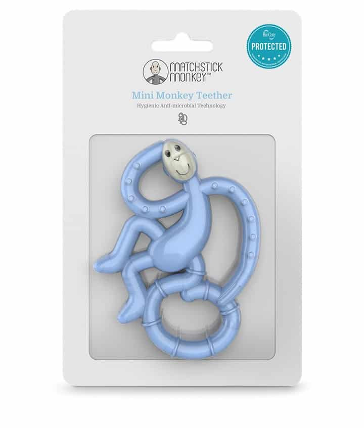MATCHSTICK MONKEY Mini hryzátko s antimikrobiálnym povrchom Biocote, svetlomodrá