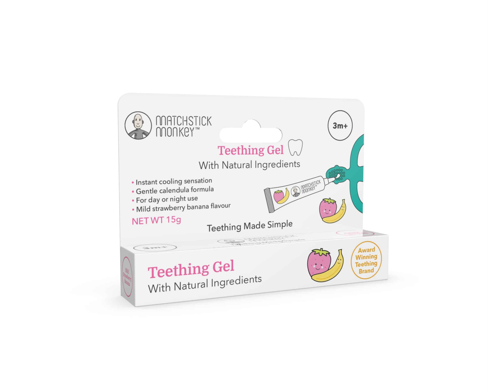 Organický gél na zúbky Matchstick Monkey je prírodné a neliečivé riešenie určené pre bábätká počas prerezávania prvých zúbkov. Jemné zloženie s ovocnou príchuťou poskytuje chladivý a upokojujúci pocit na podráždených ďasnách bez použitia chémie. Ideálny je pre rodičov, ktorí hľadajú bezpečnú a šetrnú starostlivosť o ústnu dutinu dieťaťa už od 3 mesiacov.