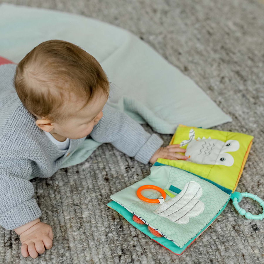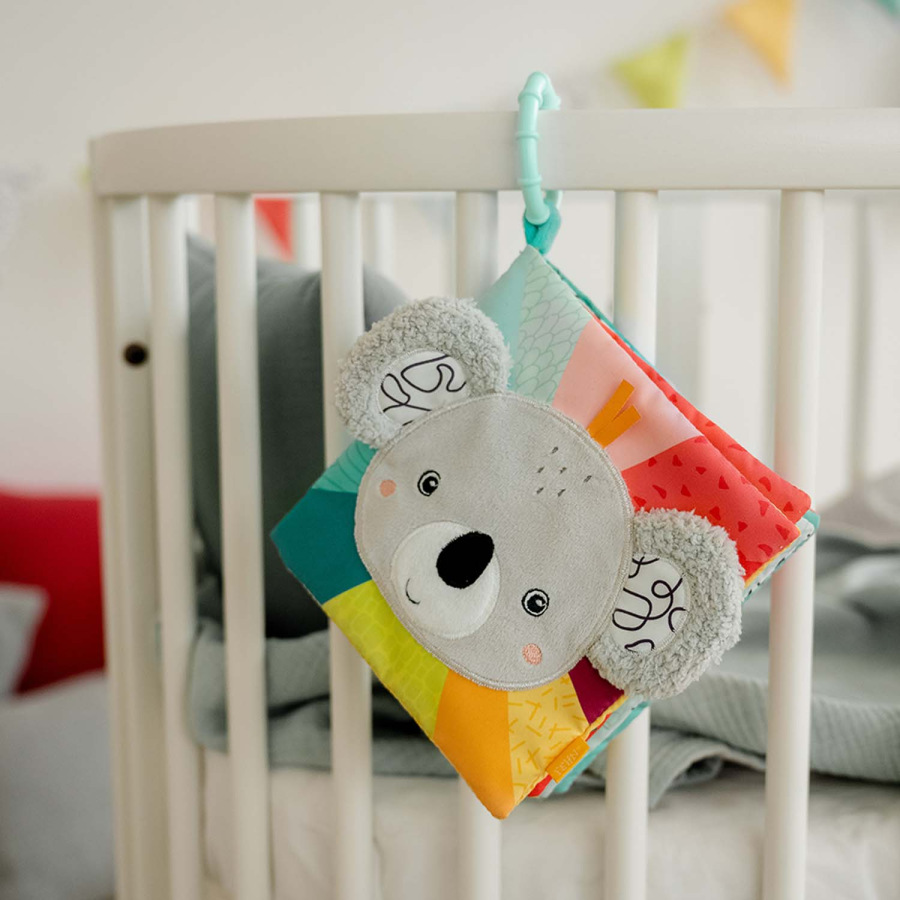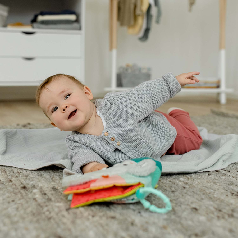 Farebné motívy a zábavné efekty na ôsmich stránkach pozývajú k zábavnému učeniu a objavovaniu. Koala, slnko, korytnačka, krokodíl, mrak a ryba sa postarajú o zábavu dieťatka.