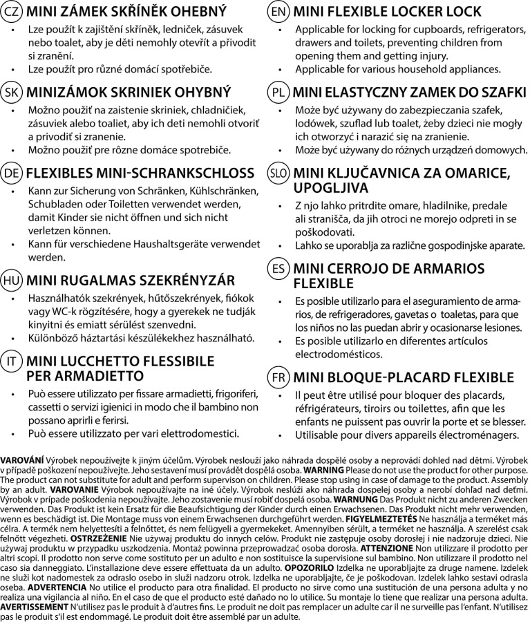 • Ohybný mini zámok je určený na zabezpečenie skriniek, zásuviek či