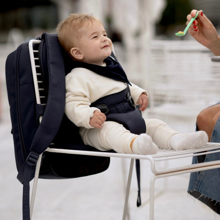 Je to taška na plienky, ktorú otec používa v kancelárii, a jediný batoh na svete, ktorý sa na cestách premení na detskú sedačku.