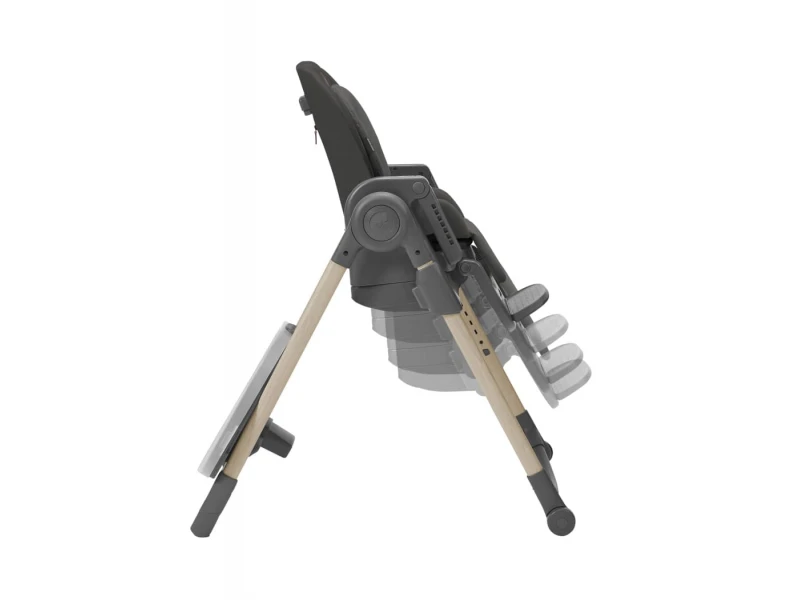 Stolička ponúka 9 nastavení výšky a je tak vhodná takmer ku každému stolu. Zadnú opierku môžete nastaviť do 5 rôznych polôh od ležania po sedenie. Variabilitu nastavenia dopĺňajú 4 varianty polohovania nôh a 2 pozície podpierky na nohy. Jedálenský pult ponúka 4 rôzne možnosti použitia a je možné ho zavesiť na zadné nohy stoličky. Odnímateľná tácka na jedálnom pulte uľahčuje jej údržbu po stolovaní.