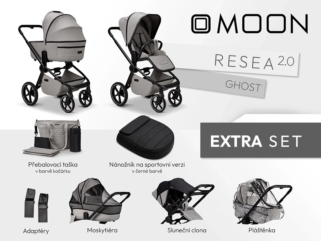 Moon Resea 2.0 EXTRA SET Ghost – ľahký kombinovaný kočík