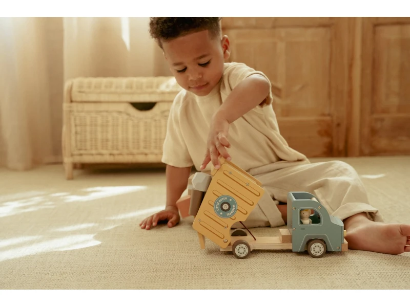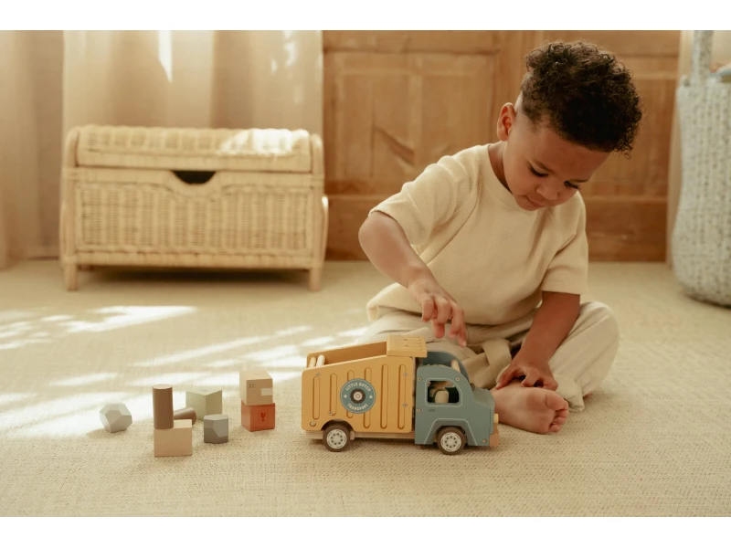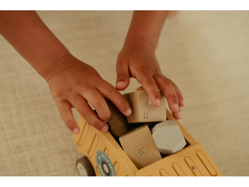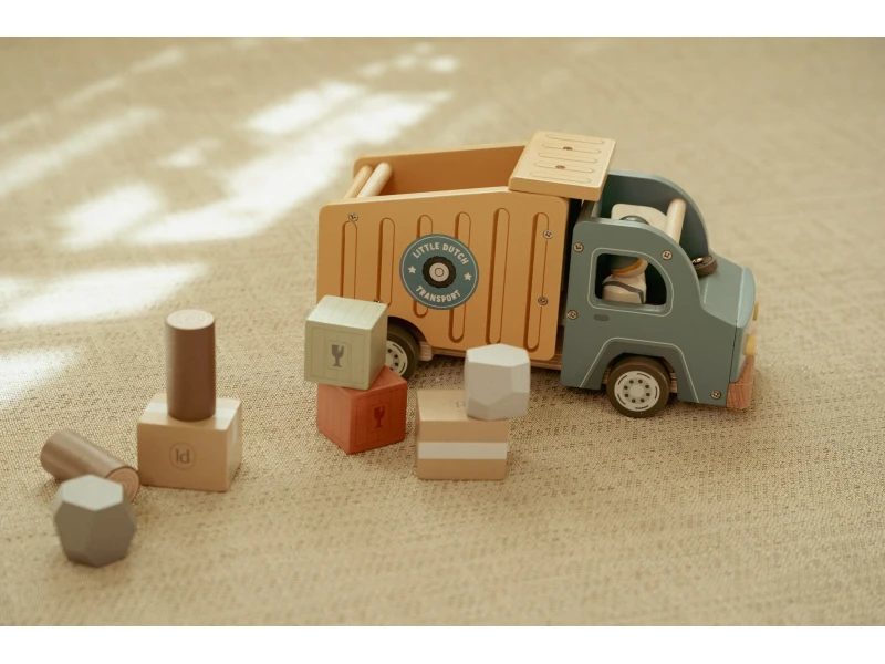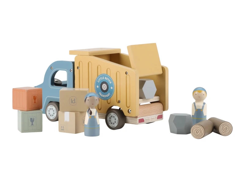 Nákladiak so sklápačkou od Little Dutch je skvelá hračka pre deti, ktoré milujú stavanie, prevážanie a tvorenie vlastných príbehov. Funkčná sklápacia korba umožní ľahko naložiť a vyložiť náklad, zatiaľ čo detailné spracovanie a odolné drevo zaručujú dlhú životnosť. Súčasťou balenia sú dvaja vodiči a rôzne druhy nákladu – klády, kamene a debničky – vďaka čomu sa hra stáva ešte zábavnejšou a rozmanitejšou.