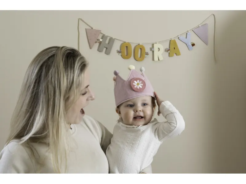 Krásna textilná korunka pre malého oslávenca alebo oslávenkyňu spríjemní a ozvláštni každú narodeninovú oslavu. Vďaka výmenným číslam 1–5 ju môžete používať od prvých až po piate narodeniny dieťaťa. Neutrálne koliesko s obrázkom zvieratka možno kedykoľvek pridať, čím sa korunka stáva skvelou hračkou aj pre hru na princeznú či kráľa.