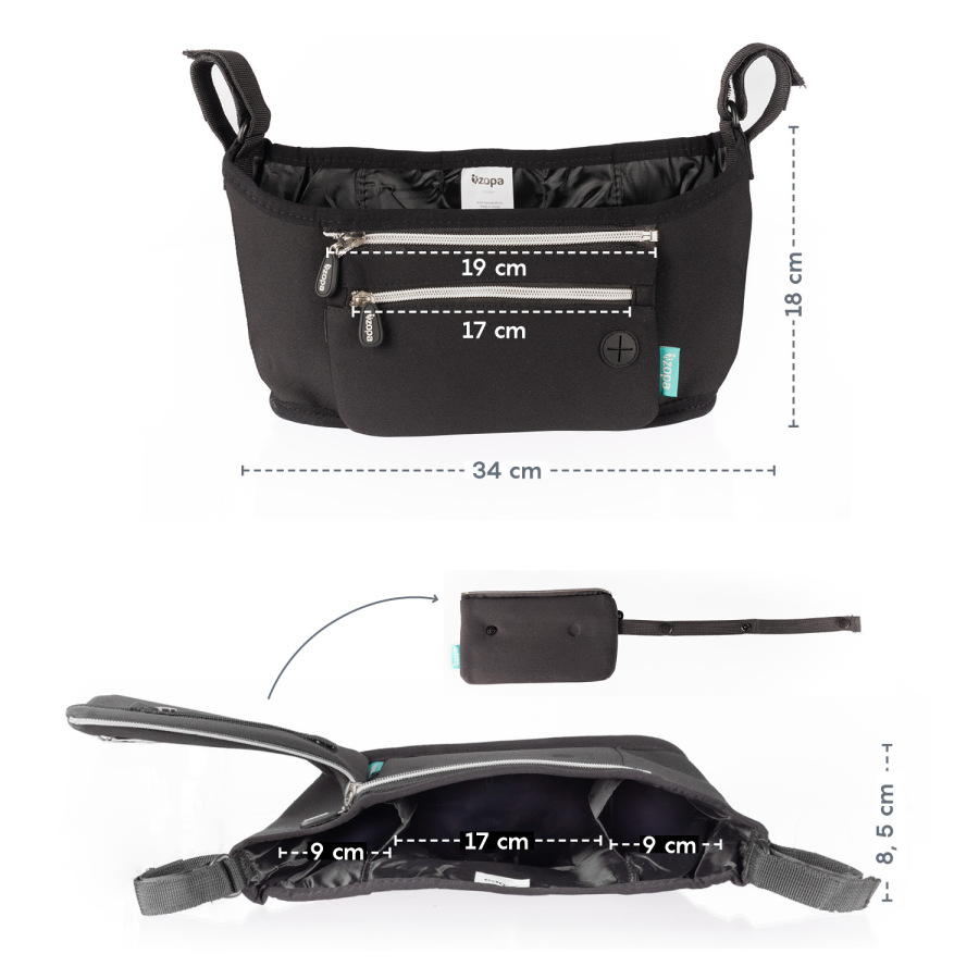 Pre lepšiu ochranu vašich vecí ponúkame neoprénový organizér na kočík, ktorý lepšie ochráni nevyhnutnosti proti vplyvom okolia. Hlavné centrálne vrecko má po stranách dva otvory na fľaše. Organizér sa hodí na väčšinu kočíkov a ľahko sa upevňuje pomocou suchých zipsov. Predná kapsičku môžete oddeľte a vziať kamkoľvek so sebou.
