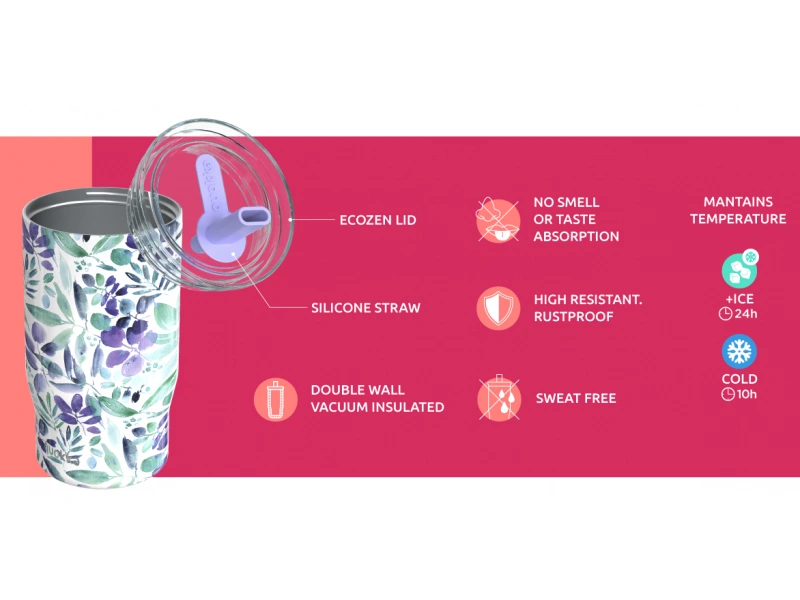 Termohrnček z dvojstennej nehrdzavejúcej ocele je ideálny na horúce letné dni, výlety aj každodenné používanie. Udrží nápoj príjemne studený bez potreby neustáleho dolievania. Vďaka slamke a tesniacemu viečku sa pohodlne používa doma aj na cestách.